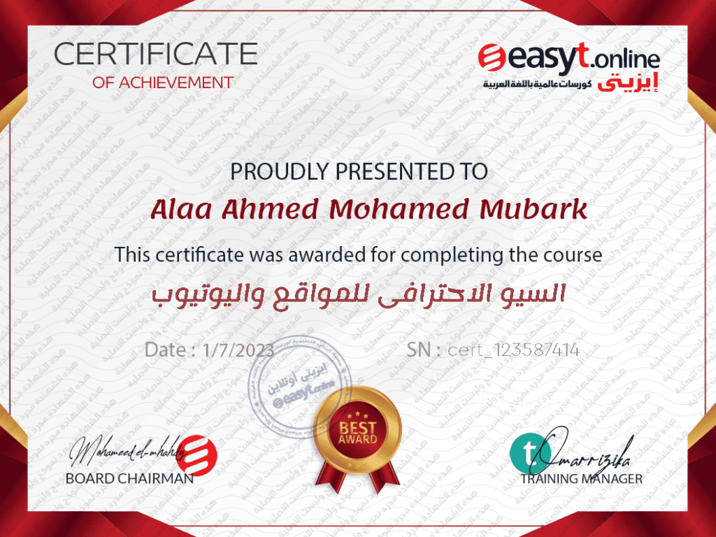 بعد الانتهاء من دراسة كل كورس سوف تصلك شهادة إنجاز معتمدة على الميل