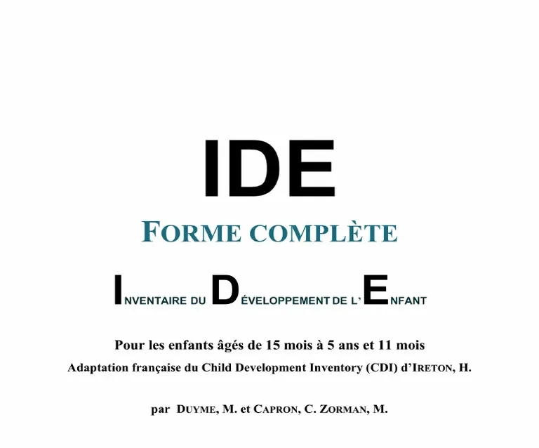 L’Inventaire de Développement de l’Enfant (IDE) : De 15 mois à 5 ans et 11 mois